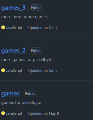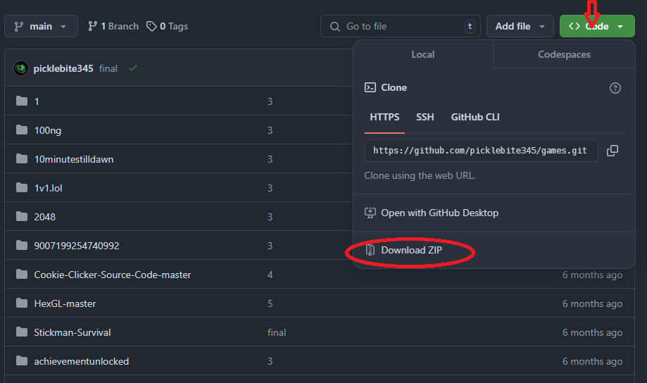 1: Download the games you want from github.com/pickelbite3(Warning: very large downloads, make sure you have time and space)