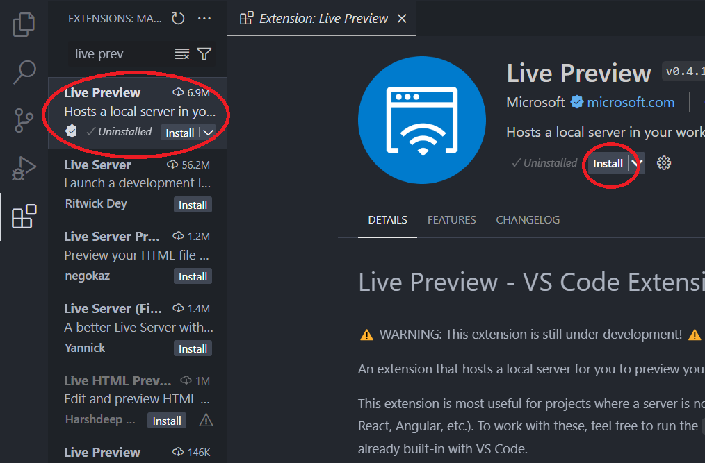 7: Now you're all set! if you want you can copy the link that looks like this into chrome or a browser and play there. As long as VS Code is running, it will work.